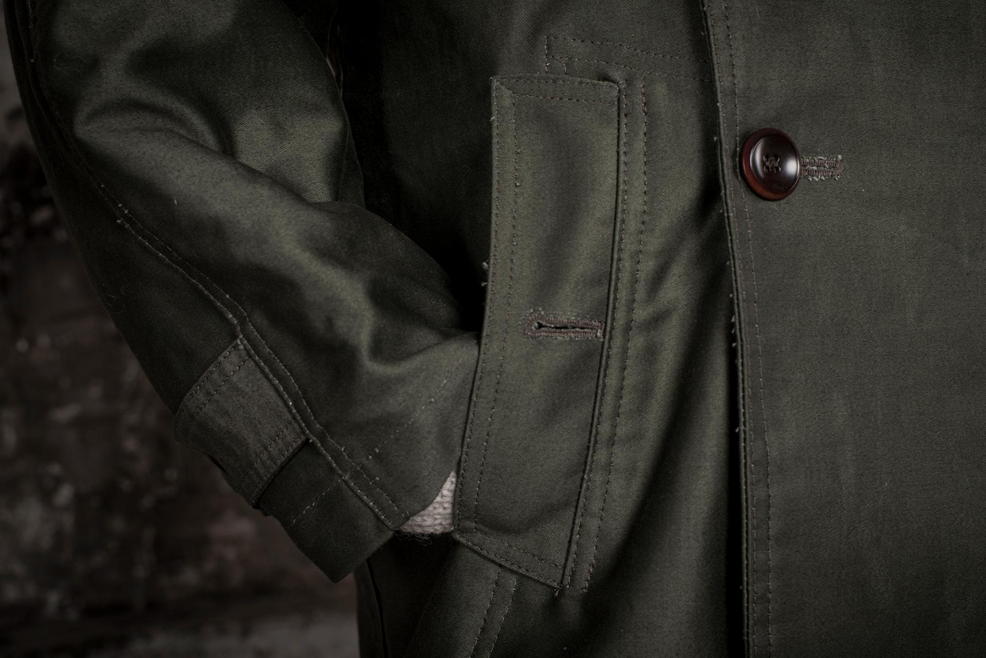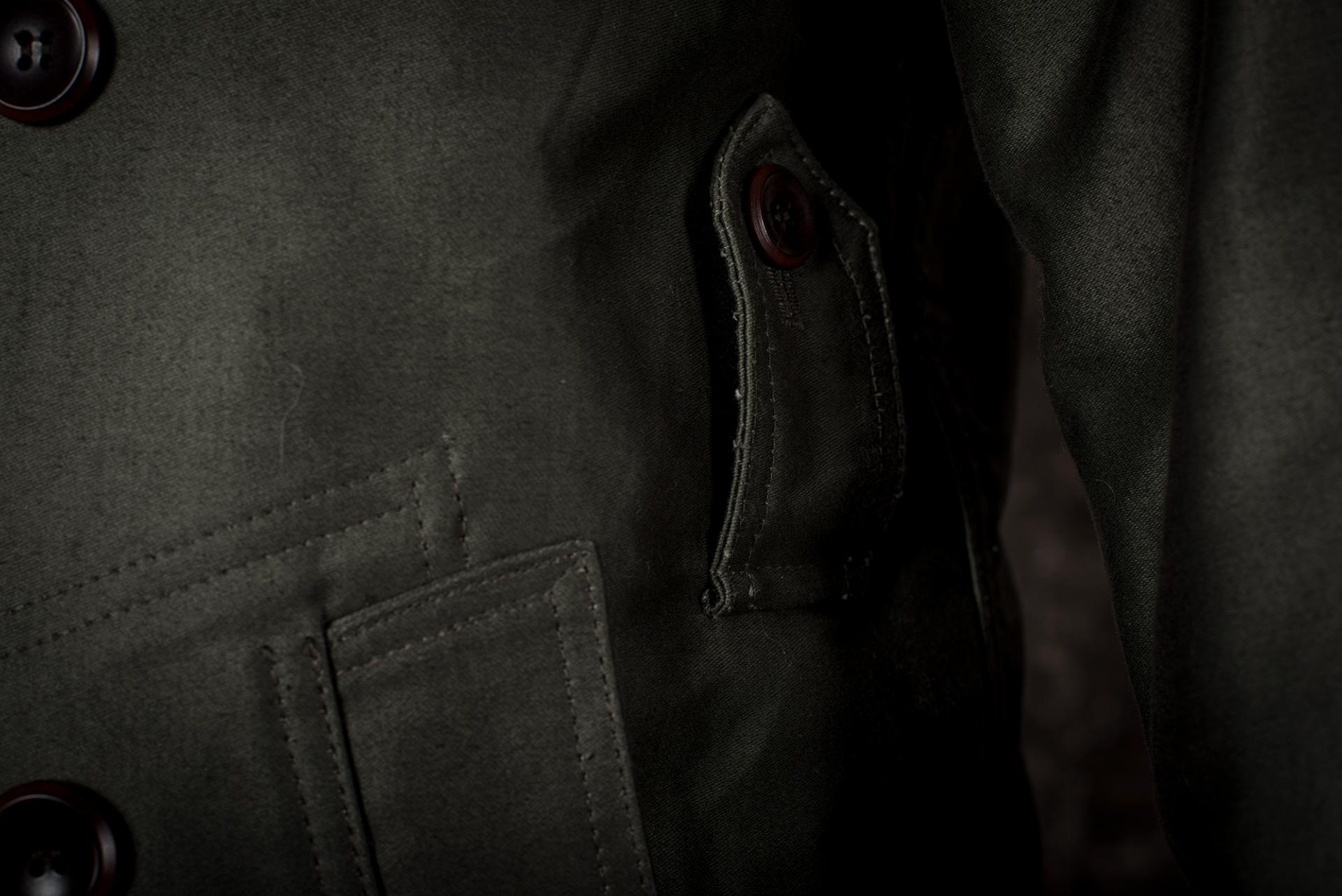 Ce paletot, en grosse toile de coton Moleskine Kaki est inspiré d’ un modèle 1938, spécialement conçu pour les motocyclistes de l'Armée Française.