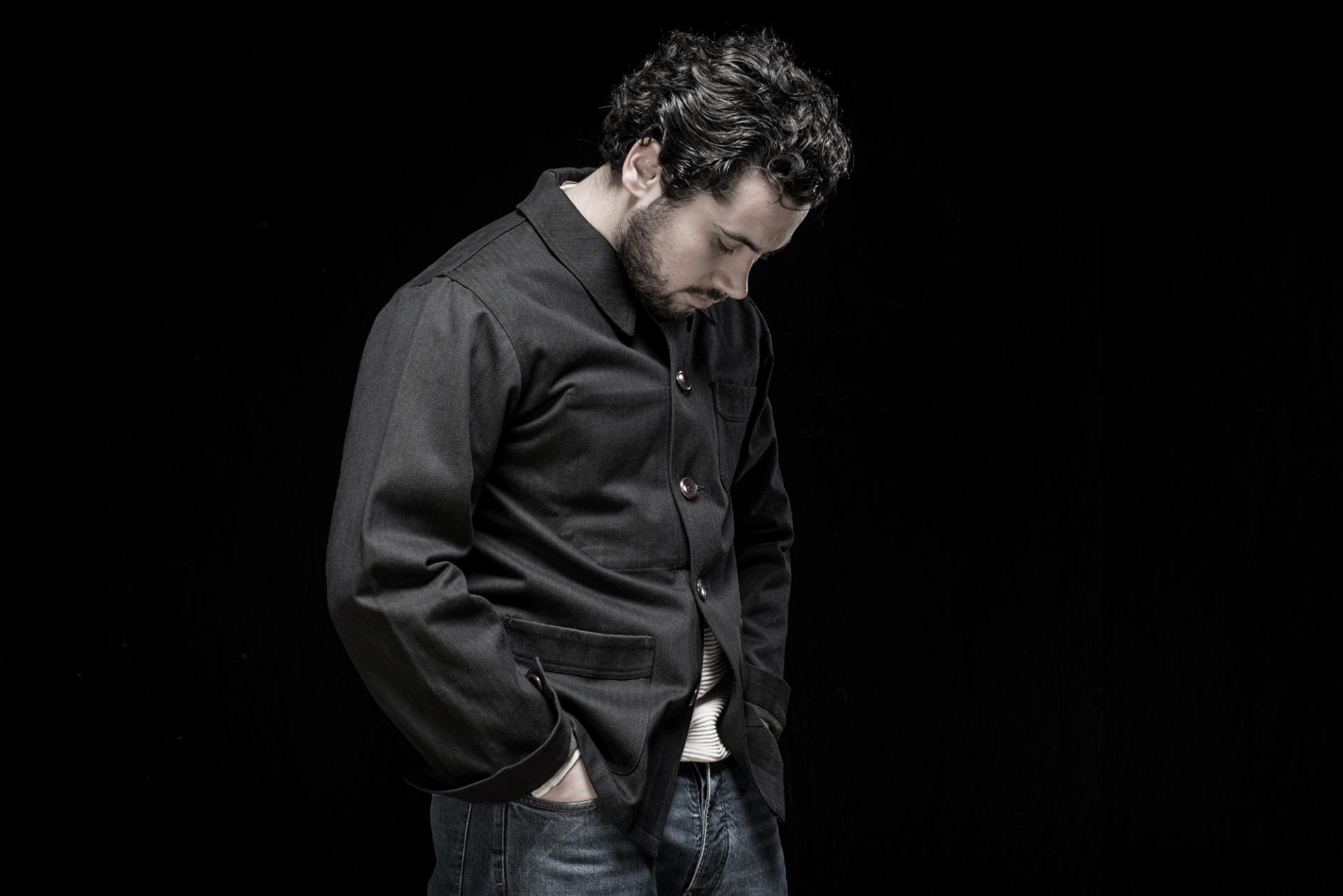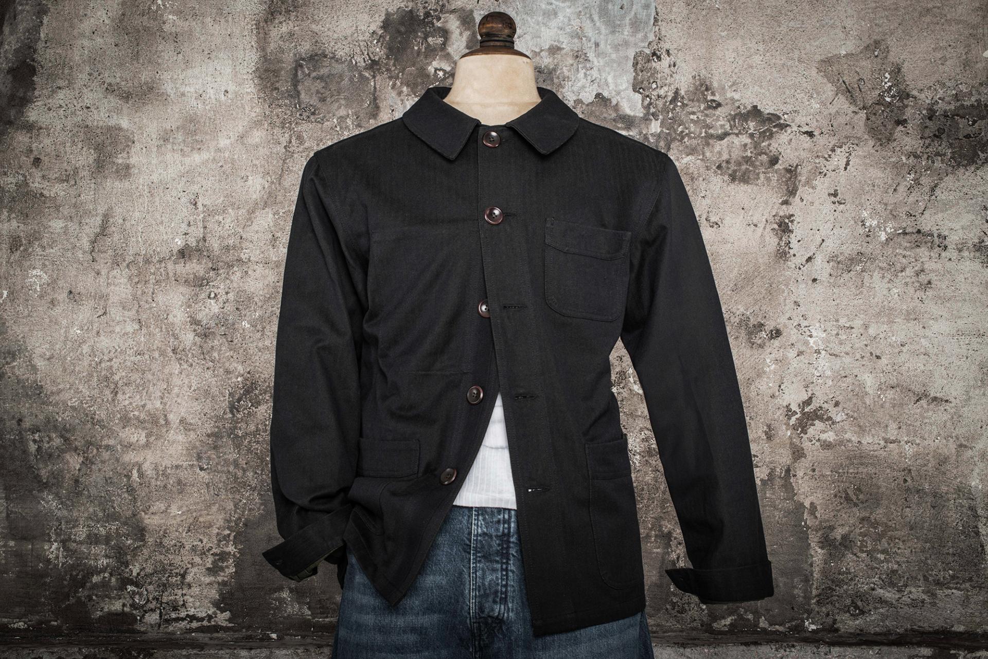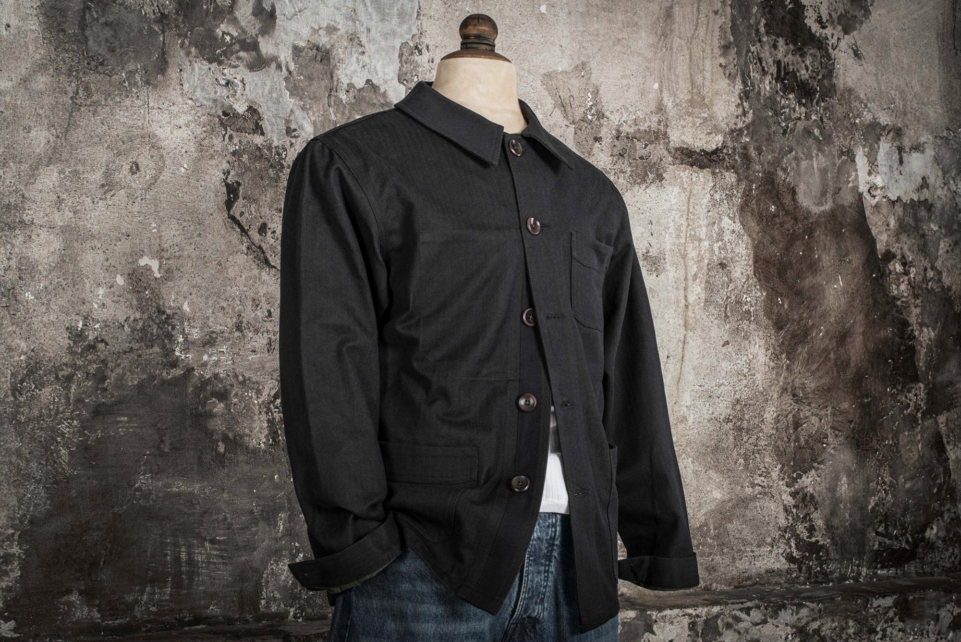 Col rond plaqué. Typique des veste de travail années 20/30.