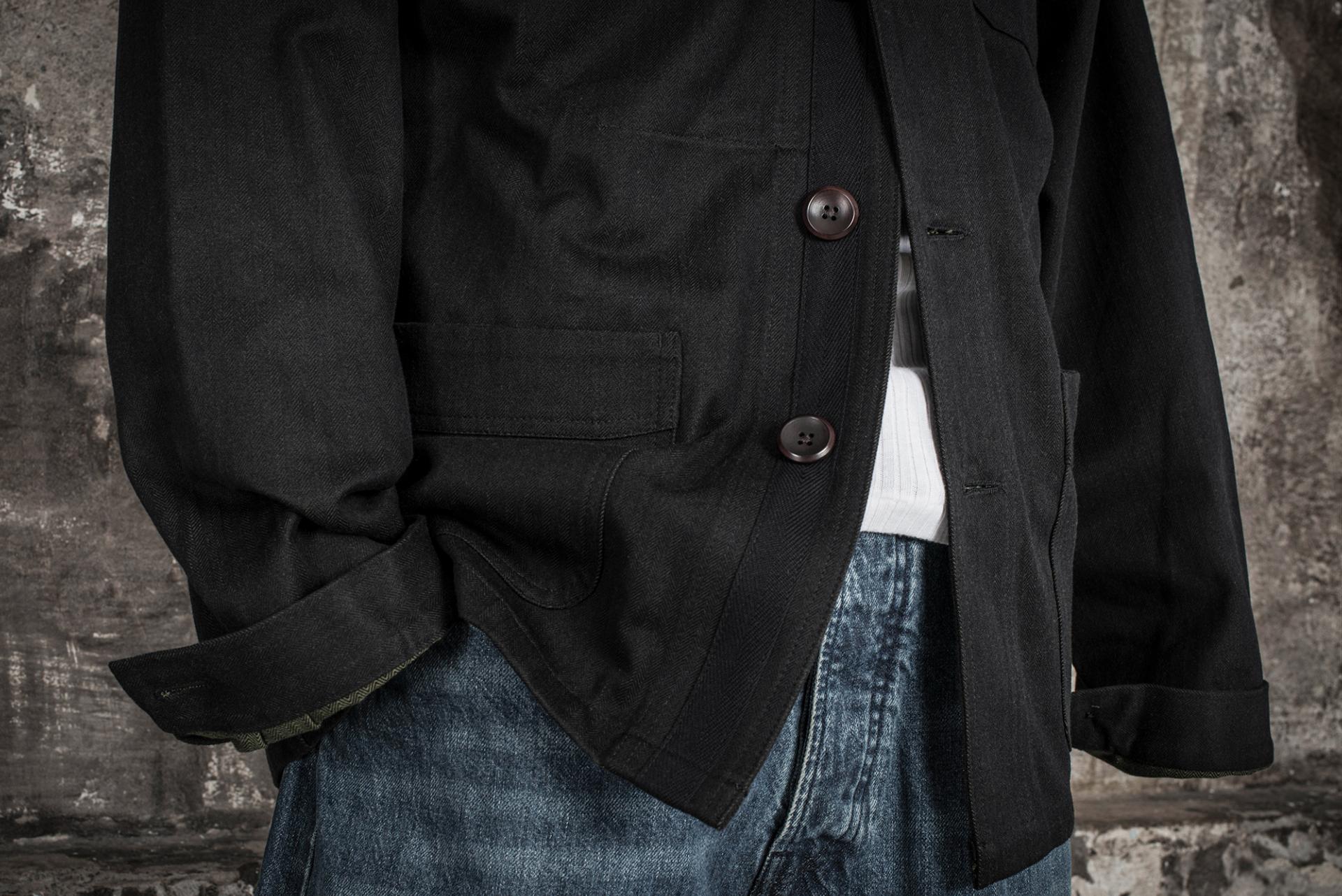 #DETAILS# Toile HBT BLACK / KAKI METIS 100% coton 14oz Manufacture METIS - FRANCE -