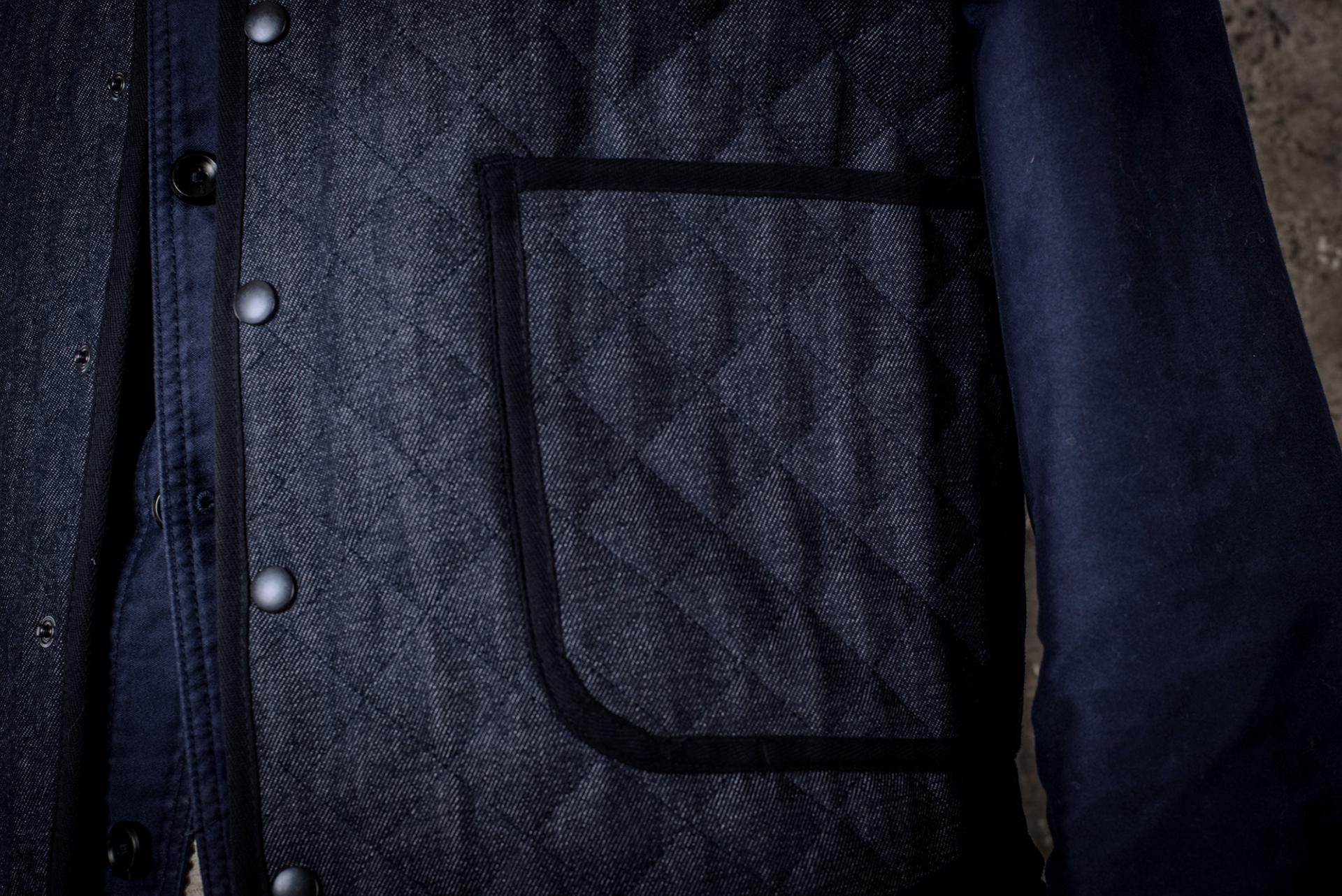 Matelassé avec un lining Marine.